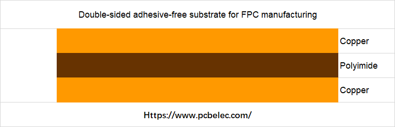 2) Non-adhesive Flexible Circuit Board: The combination method differs between adhesive and non-adhesive flexible boards. In non-adhesives flex PCB boards, hot press the copper foil and the substrate together. In comparison, its flexibility, The bonding strength of copper foil and substrate, the flatness of the pad, and other parameters are better than the flexible PCB with glue. However, its price is relatively high, and it is generally only used on high-demand occasions, such as COF (chip on film, bare chip mounted on a flexible board) and so on.