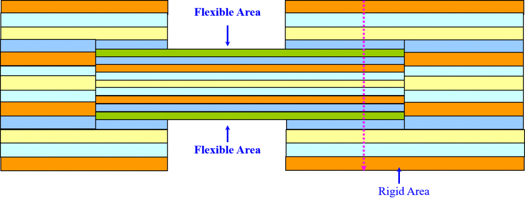 ⑤Air Gap flexible PCB. (Single-sided CCL (circuit) + pure glue + single-sided CCL) + Top and Bottom cover layer (CVL)