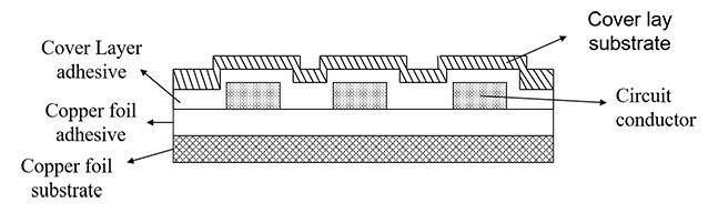 (2) Cover Lay: It is composed of organic film and adhesive. The function of the cover film is to protect the completed flexible circuit conductor part. Adhesive films have different substrate film and adhesive types and thickness specifications. Some flexible printed circuit boards do not use cover film on the surface but use solders to reduce costs.